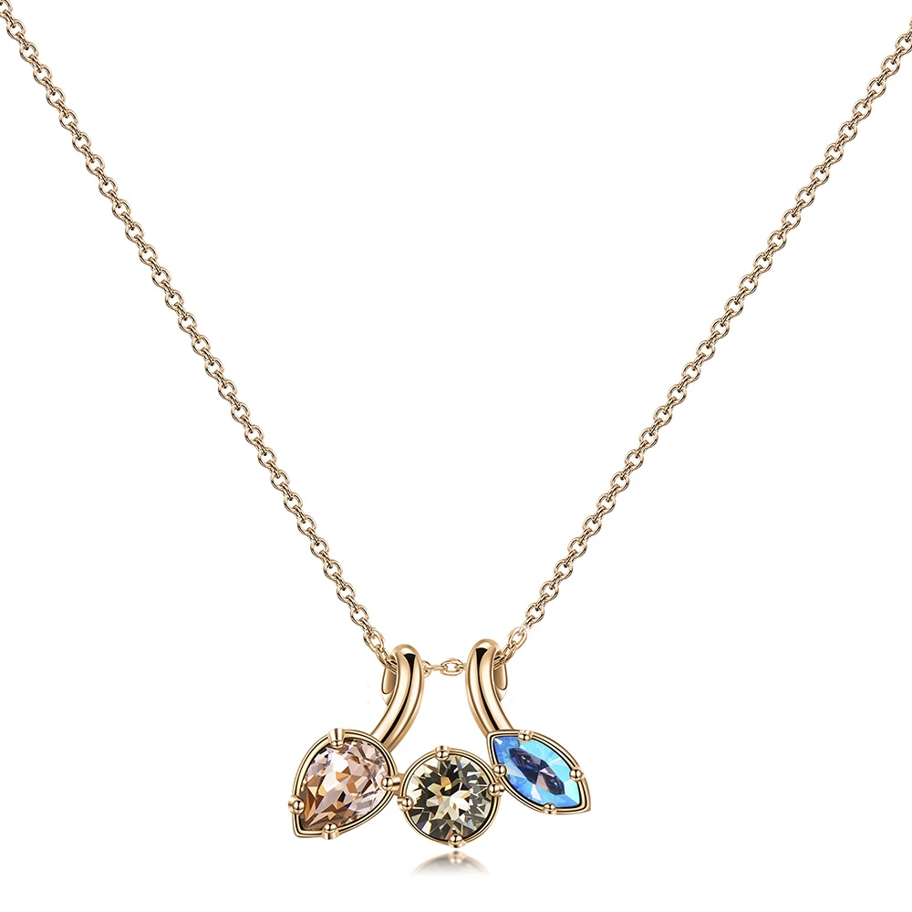 Jemný a zároveň vznešený vzhled tohoto náhrdelníku zajišťuje elegantní povrchová úprava Gold pvd, díky které má šperk odlesky zlata. Náhrdelník je zdoben různotvarými kameny starorůžové, šedé a akvamarínové barvy.