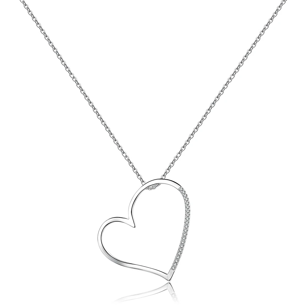 Dámský jednoduchý náhrdelník Brosway | Sublime s přívěskem ve tvaru srdce, jehož delší strana je částečně posetá drobnými zirkony.